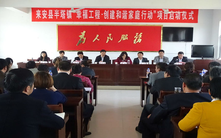 幫助困境母親,建設(shè)幸福家庭2015年4月24日,來安縣半塔鎮(zhèn)“幸福工程—創(chuàng)建和諧家庭行動”項目啟動儀式在半塔鎮(zhèn)羅莊村舉行。省計生協(xié)會秘書長張慶安,省計生協(xié)會綜合處主任科員朱霞,市衛(wèi)計委副主任蔣玲,市計生協(xié)會秘書長汪洋,縣委常委、副縣長凌文東,縣計生委主任李金柱,縣計生委副主任王芳和半塔鎮(zhèn)鎮(zhèn)長董文增出席啟動儀式,受助對象,協(xié)會會員等50多人參加了啟動儀式。
