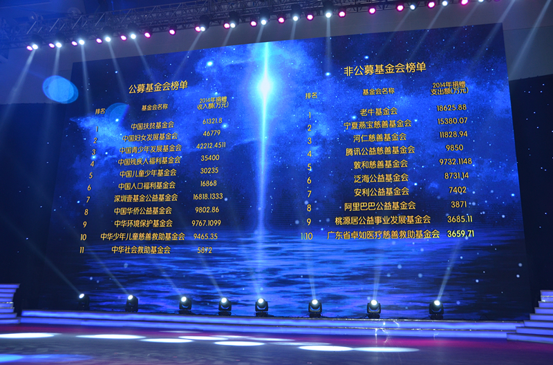 當(dāng)天,中國慈善家榜、中國慈善企業(yè)榜、中國明星慈善榜、中國公益基金會榜也同時揭曉,上榜慈善家共199人,慈善家年度總捐贈額達(dá)219.02億元。中國人口福利基金會榜上有名,以16868萬元捐贈收入位列2015公募基金會榜單第六名。