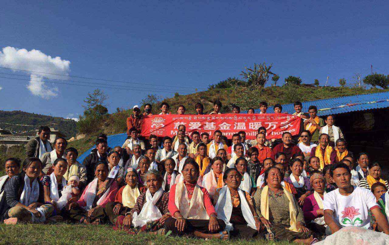 “走了11小時的山路,一路顛到了喜馬拉雅山下的Yolmo地區的一個村莊,這里大部分居住的是藏傳佛教徒,在Yolmo這個區域,統計到昨天,死亡人數超過了2500人,一路上我就沒有看到幾棟還可以居住的房子。遠眺雪山頂,看著如今滿目瘡痍的村莊,護佑村莊的白塔被震倒了,只剩下五彩的經幡在風中孤單的飄揚。因為偏僻,這里還沒有什么物資送進來,我看到最好的臨時避難居所也就是能用篷布遮蓋嚴實的小棚子,大多數的災民居住在四周無遮擋的棚子下,很難想象在夜涼的尼泊爾,缺衣少被的災民如何度過。慈愛基金給災民送來了米、篷布和帳篷,志愿者們當場就支起了兩個慈愛帳篷,就在他們剛剛倒塌的房子前,一位村民迫不及待的在那已成廢墟的家中搬出了一個桌子,它成了慈愛之家的第一件家具。對于今天的尼泊爾災區,面對大量的需要安置的災民,我們能做的還是微乎其微,不過,我們一直在努力,和許多股小愛一起匯集成大愛,幫助災后的尼泊爾人早日重建家園!”——加措活佛