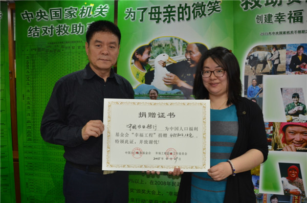 News今年是“幸福工程——救助貧困母親行動”成立20周年,在母親節前夕,中央國家機關各部、委、辦干部職工繼續為貧困母親獻愛心。二十年里,他們既是愛心捐贈者,也是幸福母親脫貧的見證者。期間,上至國家領導人、各部委領導、公務員,下至勤雜工,都積極的為貧困母親奉獻一份愛心,在他們的愛心幫助下,許許多多的貧困母親擺脫了貧困、過上了幸福的生活。截至2015年5月11日,中國人口福利基金會已收到中央國家機關干部職工愛心善款5467764.42元。這些善款將通過項目公開招標的方式用于貧困地區,幫助貧困母親發展生產。我們一定將愛心人士的善款管好、用好,不辜負他們的期望。