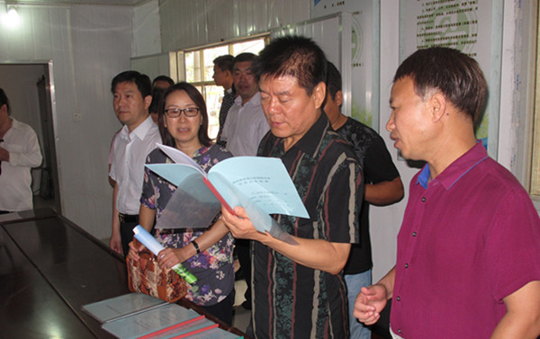 葛振江副秘書長在查看淮陽縣項(xiàng)目點(diǎn)檔案,并聽取負(fù)責(zé)人介紹