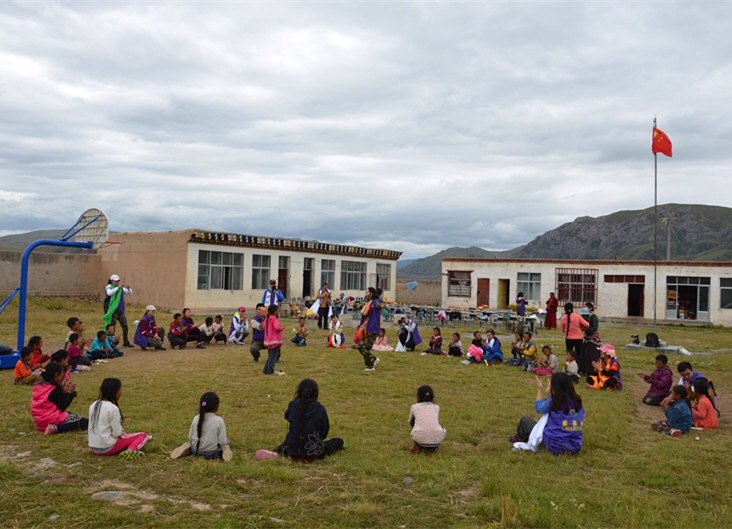善基金捐贈人、愛心大使、志愿者等在玉樹州巴塘鄉那義角小學進行捐贈活動