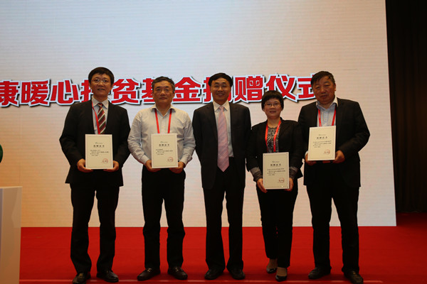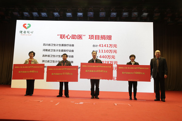 捐贈儀式上,回顧總結了健康暖心工程實施情況,對為健康暖心工程作出貢獻的15家愛心單位和22名愛心志愿者進行了表彰和鳴謝,現場募集項目資金1.05億元。其中,中國醫學科學院腫瘤醫院、華中科技大學同濟醫學院附屬協和醫院、華中科技大學同濟醫學院附屬同濟醫院、中南大學湘雅醫院、湘雅二醫院、山東大學齊魯醫院等6家預算管理醫院累計向“健康暖心”扶貧基金捐贈1800萬元?!敖】蹬摹鶎俞t療裝備聯心助醫計劃”項目向四川省、河南省、浙江省、吉林省和榆林市基層醫療機構捐贈醫療設備價值7700余元萬。啟動了“萬名鄉村醫生資助計劃”,上??铺~迪醫療器械有限公司向鄉村醫生代表捐贈價值1000萬元的鄉村醫生健康設備和手術服務。最后,王培安副主任、洪天云副主任、趙炳禮理事長等與會領導共同為健康暖心工程的標識揭牌。