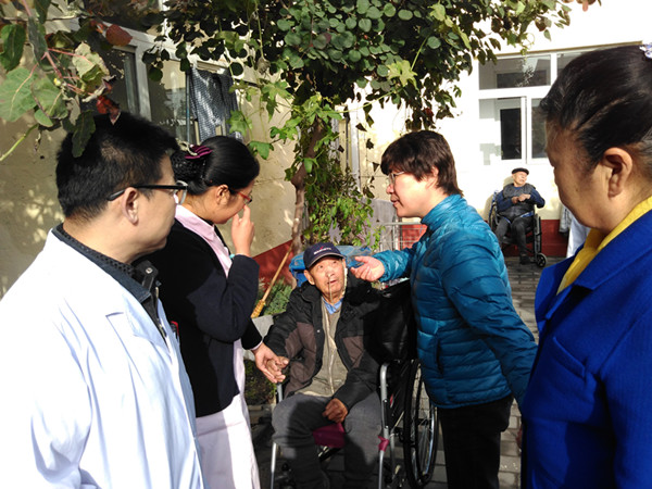 圖3:俞華副秘書長向醫務人員詳細了解園區醫療設施、看護標準等情況