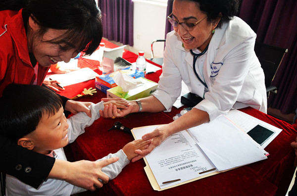 篩查按七個環節有條不紊地開展。在進行登記、攝像后,由護士組測量體征,依次由整形手術醫師、麻醉師、小兒科醫師進行專業檢查,最后由口腔組進行口腔健康篩查。檢查過程進行順利,為幫助孩子們避免害怕和緊張的情緒,有愛心又有經驗的醫生護士們用玩具和小禮物的方式逗孩子們開心,更有性格開朗的小朋友與醫生結下了友誼,告別時已經在擁抱或擊掌了。幫助孩子豎立良好的心態,將有助于后面手術的開展。