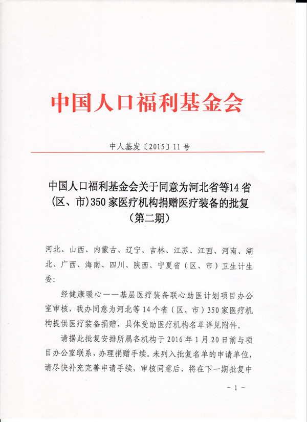 經(jīng)健康暖心——基層醫(yī)療裝備聯(lián)心助醫(yī)計劃項目辦公室審核,我辦同意為河北等14個省(區(qū)、市)350家醫(yī)療機構(gòu)提供醫(yī)療裝備捐贈,具體受助醫(yī)療機構(gòu)名單詳見附件。