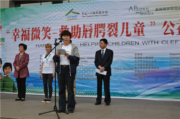 本次活動依然由中國人口福利基金會與美國微笑聯盟基金會聯合發(fā)起。中國人口福利基金會副秘書長俞華、美國微笑聯盟副會長黃球綸及長治市人民政府副市長王貴平分別在啟動儀式上致辭。山西省衛(wèi)生計生委、山西省計生協、長治市市委、長治市人民政府、長治市衛(wèi)生計生委、長治市計生協相關人員出席了啟動儀式。