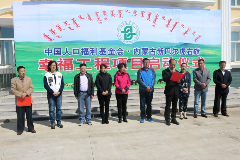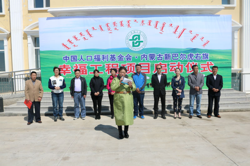 幫助困境母親,建設幸福家庭5月25日,中國人口福利基金會·內蒙古新巴爾虎右旗“幸福工程——救助貧困母親行動”項目啟動儀式在新右旗達賚蘇木舉行。自治區計生協會副秘書長張利峰、呼倫貝爾市衛計委副主任王艷梅、旗政府副旗長黃耀波、旗衛計局、達賚蘇木負責人及受助母親共計60余人參加了啟動儀式,儀式由呼倫貝爾市計生協會秘書長那林主持。