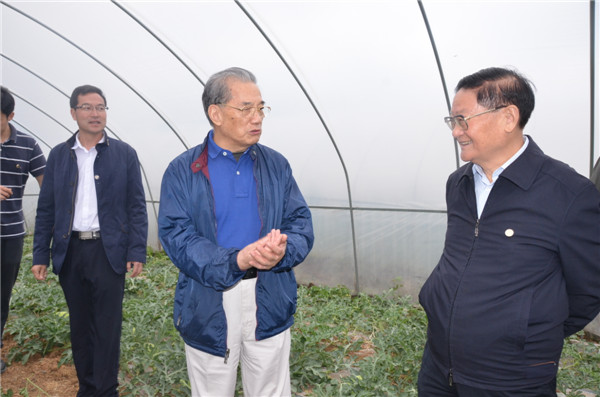 李金華會長一行先考察了草海鎮同心村幸福工程項目西瓜大棚,查看了大棚建設及西瓜生長情況,詳細了解了受助者的申請條件、項目模式以及項目收益等情況。2016年,同心村得到50萬元幸福工程項目款,20位受助母親每人收到2.5萬元資助款。為了更好的幫助母親發展生產,確保項目順利運轉,幸福工程項目辦因地制宜,采取“公司+基地+合作社+農戶(貧困母親)”的運作模式,建起了幸福工程項目西瓜種植大棚,受助母親通過勞動務工及入股分紅獲得收益,在幸福工程項目的幫助下,同心村的受助母親年收入增加到了15000元。