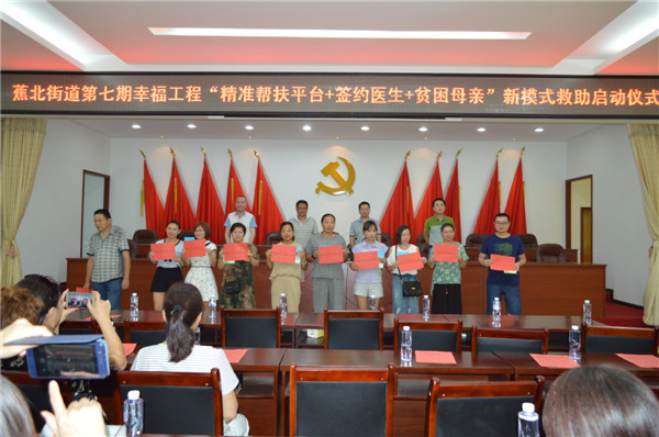 2017年8月21日,蕉北街道正式啟動“精準幫扶平臺+簽約醫生+貧困母親”幸福工程精準幫扶項目,依托蕉城生育關懷精準幫扶平臺的“互聯網優勢”,投入幸福工程款16萬元扶持10位計生貧困母親發展電商、微商等項目及從事家政員服務行業,促進計生家庭脫貧致富。同時,街道計生協會為計生貧困母親開通“就醫”、 “就業”、 “培訓”、“交流”等綠色通道,助力幸福工程“扶貧、扶智、扶助健康”工作。