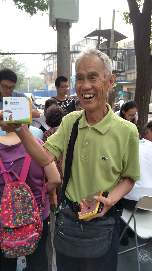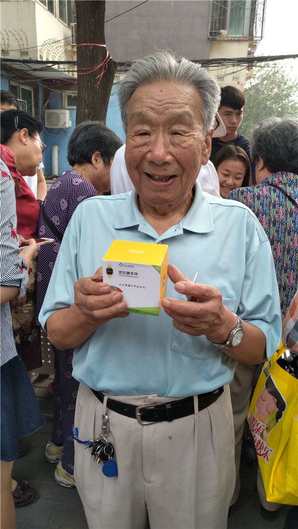 News2017年9月1日,中國人口福利基金會(huì)“黃手環(huán)行動(dòng)”公益項(xiàng)目走進(jìn)北京市海淀區(qū)薊門里社區(qū),為患有阿爾茨海默病等老人免費(fèi)發(fā)放定位黃手環(huán)。