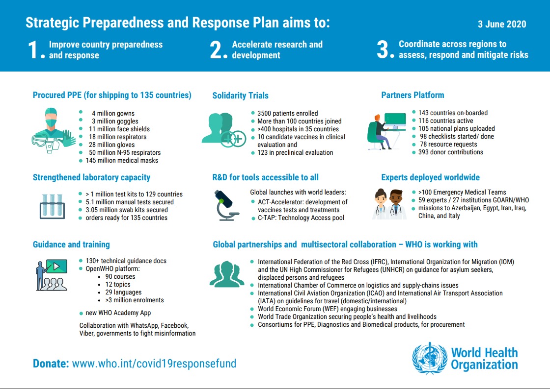 Allocations from the COVID-19 Solidarity Response Fund are decided by WHO in line with COVID-19 Strategic Preparedness and Response Plan, and will include UNICEF, vaccine development alliance CEPI (Coalition for Epidemic Preparedness Innovations), and other partners.